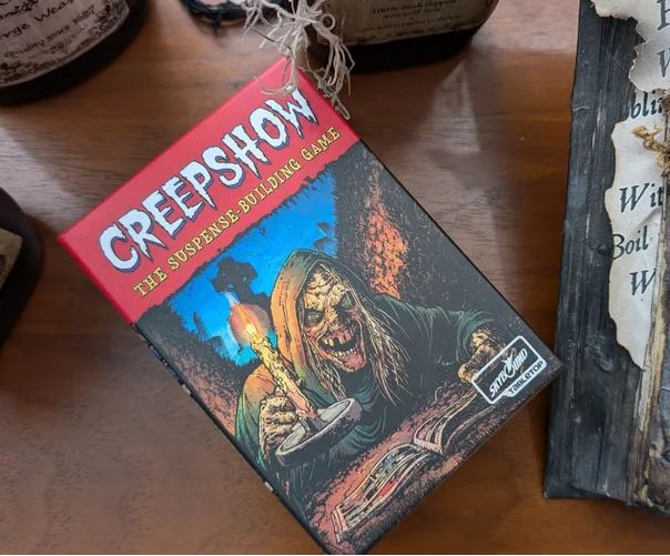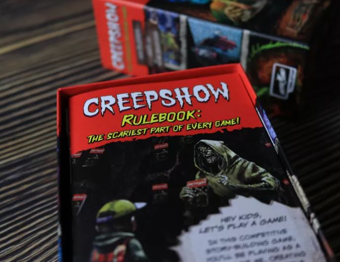 In this competitive story-building game, players play as “Creeps” and build deliciously horrible stories to send bad people to their well-deserved demises. The game is played with story cards and suspense cards. Story cards work together to form a chain that tells a story for each villain in three acts. Suspense cards are the fuel that makes the story work!